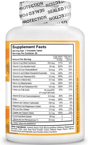 Doctor Taller Kids - Kids Multivitamins, Toddler Vitamins - Support Healthy, Immunity and Bone Strength for Ages 2 to 9 - Grape Flavor - 60 Vegan Chewable Tablets | 1 Month Supply
