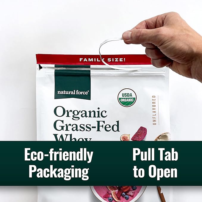 - Eco Friendly Packaging & Sustainable Sourcing – Our whey is sourced from heritage breed Jersey cows that graze on lush, coastal California grasses all year long. It is then packaged in a BPA-free recyclable pouch that uses 70% less plastic than standard tubs. Use the pull tab to on the front of the package to open. Do not cut!