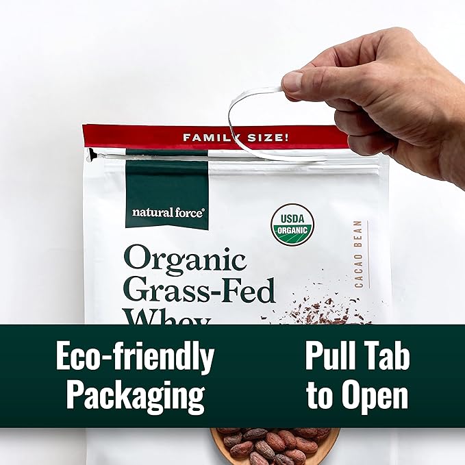 - Eco Friendly Packaging & Sustainable Sourcing – Our whey is sourced from heritage breed Jersey cows that graze on lush, coastal California grasses all year long. It is then packaged in a BPA-free recyclable pouch that uses 70% less plastic than standard tubs. Use the pull tab to on the front of the package to open. Do not cut!