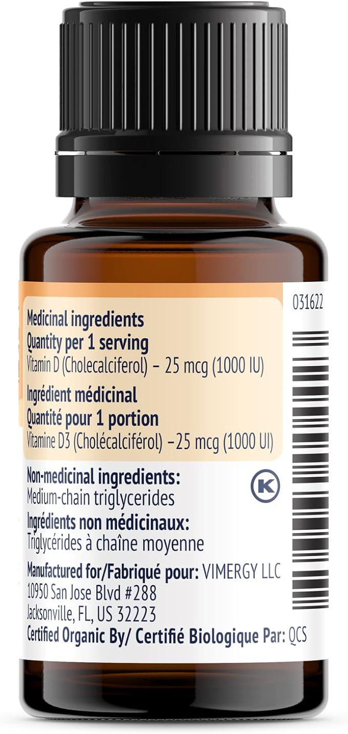 - PEACE OF MIND CLEAN. Vimergy is triple third party verified, for your peace of mind. Our vegan D3 liquid is a clean formula designed to work well for everyone. This liquid supplement contains no citric acid, maltodextrin, soy, corn, alcohol, sugar, colors, flavors, or preservatives. It’s USDA Certified organic, non-GMO, gluten-free, and paleo-friendly.