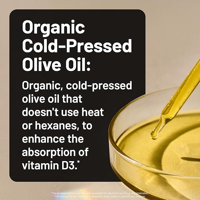 - ORGANIC COLD-PRESSED OLIVE OIL: NatureWise Vegan Vitamin D3 + K2 is formulated with organic, cold-pressed olive oil that doesn't use heat or hexanes, to enhance the absorption of vitamin D3.*