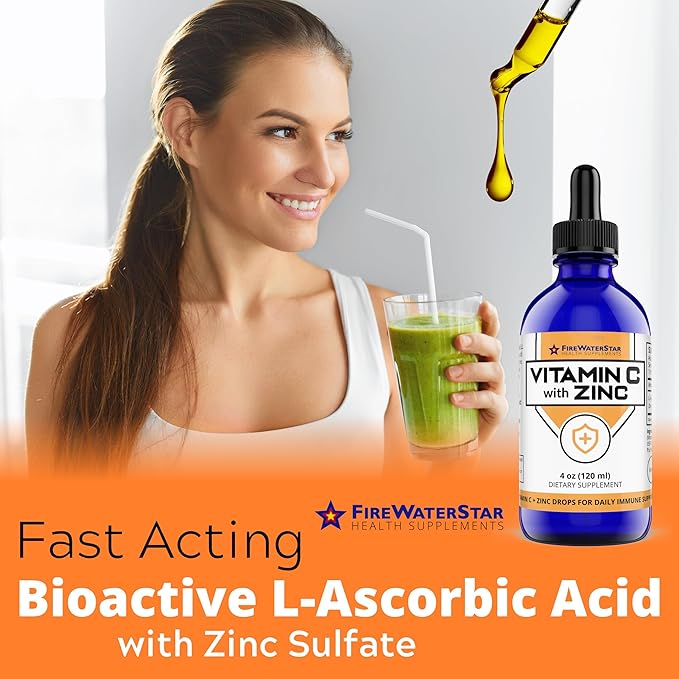 FWS Liquid Vitamin C with Zinc Supplement for Adults and Kids, Organic, Non-GMO, Vegan, Easy VIT C Drops, Ascorbic Acid, 60 Day Supply, Supports Immune System and Skin Health, Essential Vitamin, 4 oz