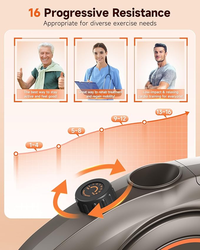 - 【16-Level Progressive Resistance】Niceday Recumbent Bike offers 16 levels of progressive resistance, suitable for the diverse exercise needs of the whole family; The mechanical knob allows precise control of resistance changes, ensuring seamless transitions between intensity levels; Ideal for gentle physical therapy and relaxing cardio exercise