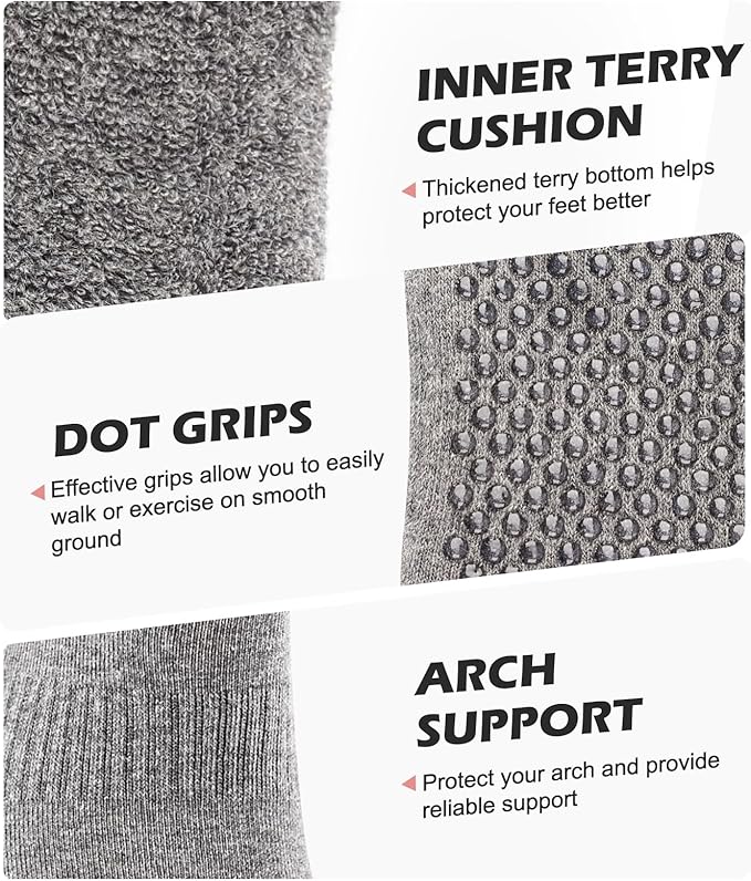 - [Comfortable Fabric & Terry Cushion] - Made of 92% cotton and 8% spandex, our grip socks are ultra soft, comfortable, and full of elasticity, feel like a second skin. A cushioned terry layer hugs your soles, absorbing impact during walking or jumps while keeping your feet comfortable. The Pilates socks wrap snugly around your arch and heel, perfect for house floors, studio floors or long meditation sessions. Suitable for all seasons.