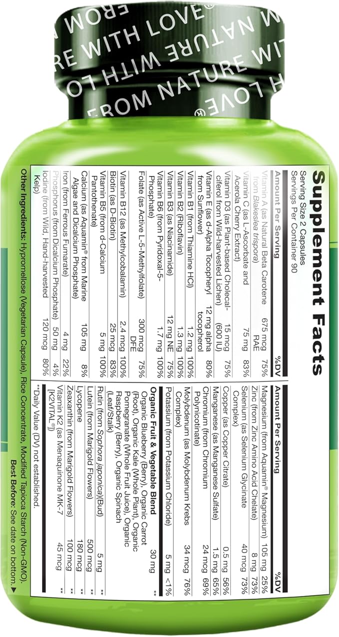 - PREMIUM PLANT-BASED INGREDIENTS: Nautrelo Whole Food Multivitamins are made with plant-based vitamins and minerals including Vitamin D3 from lichen, Vitamin E from Sunflower, and Calcium and Magnesium from marine algae.