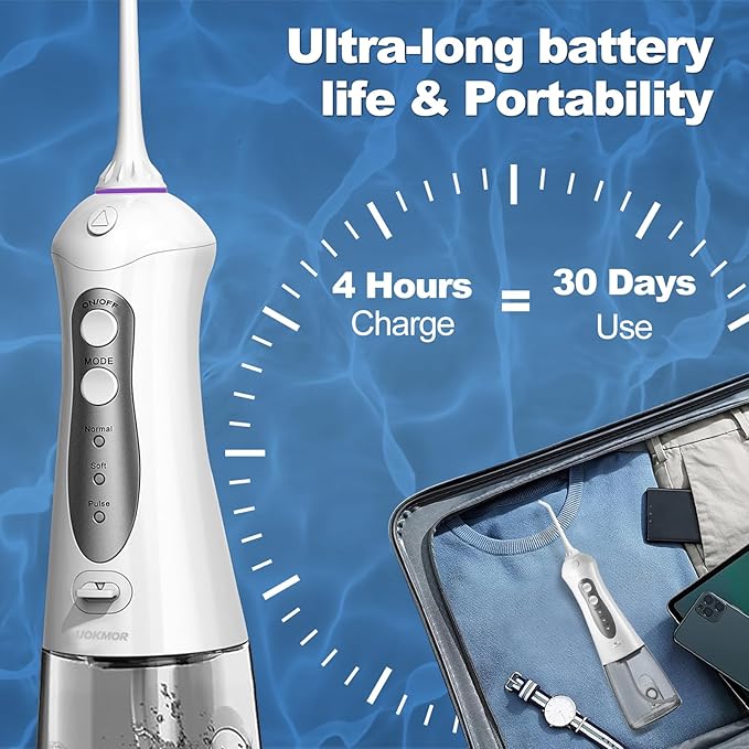 - 【Daily Oral Care】Convenient On-the-Go Solution: Breaks the barriers of traditional oral care with wireless, compact, and rechargeable design. Excellent for on-the-go oral hygiene, this travel water flosser guarantees portable and effective cleaning wherever you are.