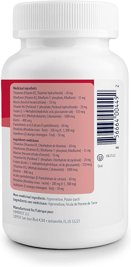 Vimergy Adapto B Complex, 120 Servings – High Potency with 8 B Vitamins, Rhodiola & Hawthorn Berry – Supports Mental Energy, Cognition, Mood - Non-GMO, Kosher, Vegan, Paleo, No Gluten, No Soy