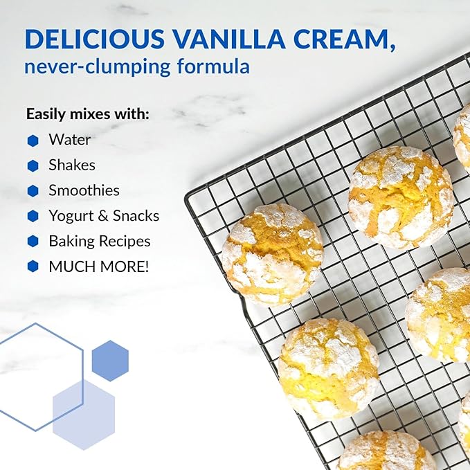 - DELICIOUS VANILLA CREAM. Our healthy low-carb protein powder is non-GMO, with no hormones, artificial sweeteners or colors; combine with a healthy diet and regular exercise for best results.