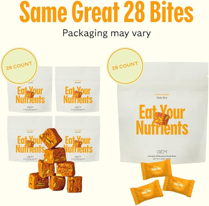 - DELICIOUSLY CONVENIENT: Crafted by an in-house pastry chef, every Bite is chewy, subtly sweet, and satisfying. Just one Bite a day — anytime, anywhere. No added sugar, no hassle, no pill fatigue. Just real food, ready at any time. Just one bite a day! Easy to use and on-the-go, travel friendly. Plus, it’s much more fun to eat than it is to take.