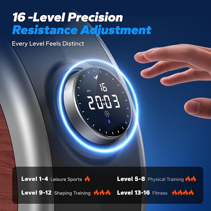 - Smart Electronic Control: Precisely manage 16 levels of electromagnetic resistance with a simple twist. Pull to start, and enjoy automatic resistance adjustment via the MERACH app, freeing your hands for an uninterrupted workout.