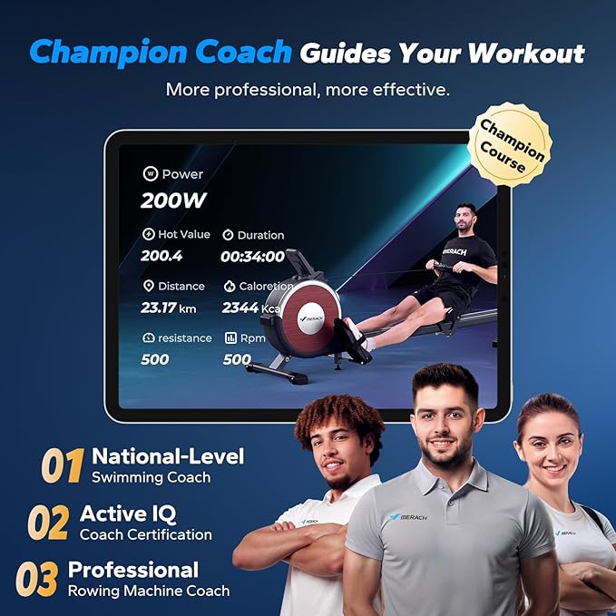 - MERACH APP: Our App offers various FREE courses and programmed exercises for you, Taking the courses can bring your rowing experience to the next level. Also compatible with KINOMAP APP, immerse yourself in splash, and feel nature even while rowing at home.