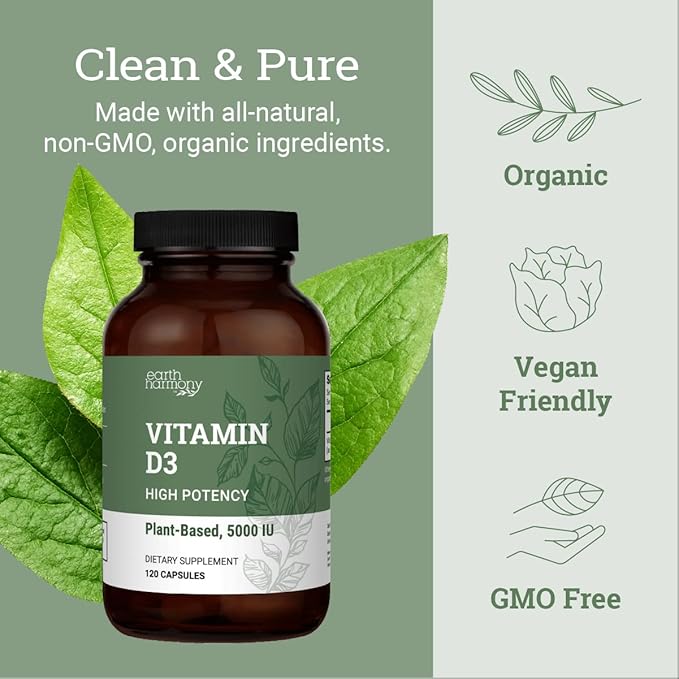 Vegan Vitamin D3 5000 iu Supplement - Pure, High Potency Supplements for Immune Health & Strong Bones Support - Vitamin D 5000 iu - 120 Capsules, 4-Month Supply