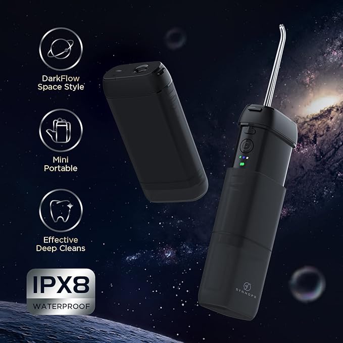 - [The Portable design &Deep Clean]: The SYNHOPE water flosser is designed with telescopic water tank and integrated storage nozzle, which greatly reduces the volume of the product compared with similar products and is very convenient to carry around. SYNHOPE Water Flosser can offer high pressure water pulse 1200 times &140PSI strong water pressure, which is the most convenient and most effective way to floss, removing up to 99.9 percent of plaque from treated areas and improve gum health.