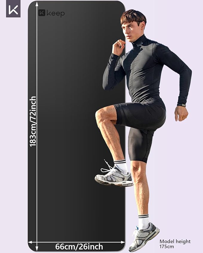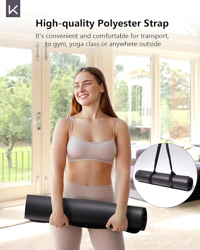 KEEP Professional Yoga Mat with Strap for Men and Women, 5mm Heavy High-Density Natural Rubber Mat for Premium Material Superior Grip, Non-Slip, Eco-Friendly 72"x26" Exercise Mat