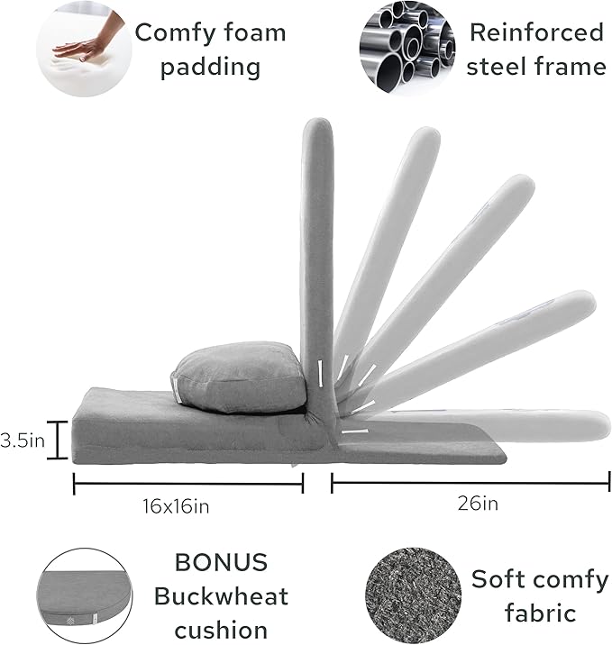 - FOLDABLE MEDITATION FLOOR CHAIR - Elevate your meditation or yoga practice with this custom-made meditation chair, specially designed for cross-legged floor sitting.These comfortable folding floor chairs with back support allow you to continue meditation sessions pain-free.