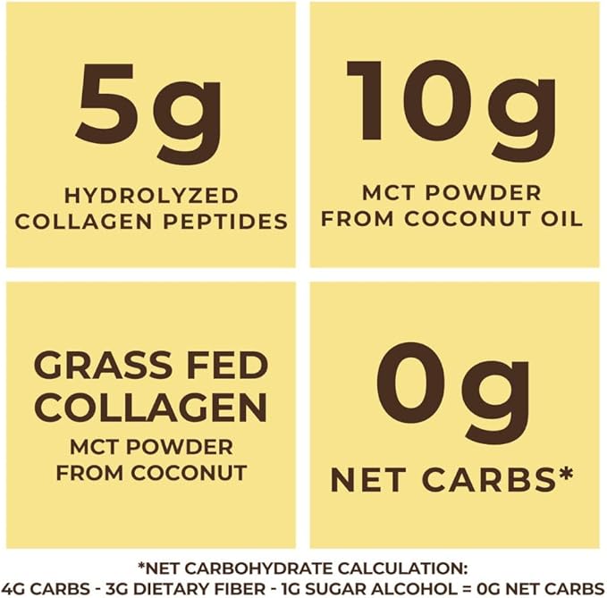 - Premium Ingredients: MCT Powder (60/ 40, C8 /10) with GRASS FED COLLAGEN PEPTIDES and PREBIOTIC FIBRE - 10g of MCT Powder Oil, 5g of Collagen Peptide Powder PLUS Prebiotic Acacia Fibre with a rich vanilla taste. A must have for the Keto diet!