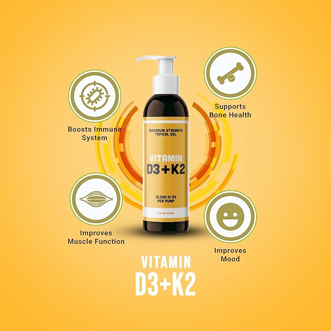 - Give your Immune System a super charge with Vitamin D3 and K2 Topical gel. Receiving enough vitamin D3 through sunlight is difficult with today's indoor lifestyle, and this immune support supplement Topical Gel helps you get all the vitamin D3 you need, providing 15000+ IU’s of Vitamin D3 per pump for maximum effectiveness.