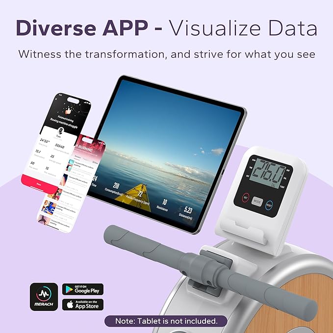- MERACH APP: Our exclusive App offers various courses and programmed exercises for you. Also, compatible with KINOMAP APP, immerse yourself in splash, and feel nature even while rowing at home.