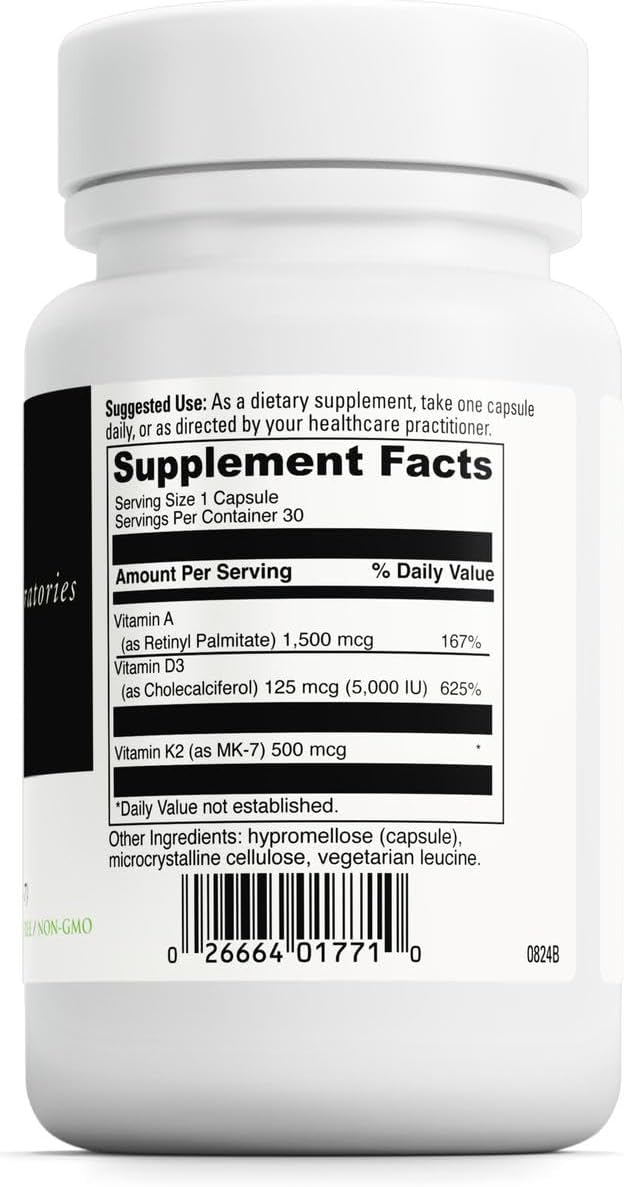 DAVINCI Labs ADK - Helps Support Bone, Heart & Immune Health - Dietary Supplement with Vitamins A, D3 & K2 (as MK-7) - Vegetarian, Gluten Free & Soy Free - 30 Capsules
