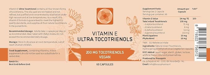 - HIGH DOSED 200MG PURE TOCOTRIENOLS – Unique mix of Tocotrienols maximized in one capsule. We could not fit more in this capsule. Easy to swallow. Many capsules are large and unpleasant to swallow, luckily with these capsules this problem no longer exists. The capsules can even be opened easily to make it even more comfortable to take in.