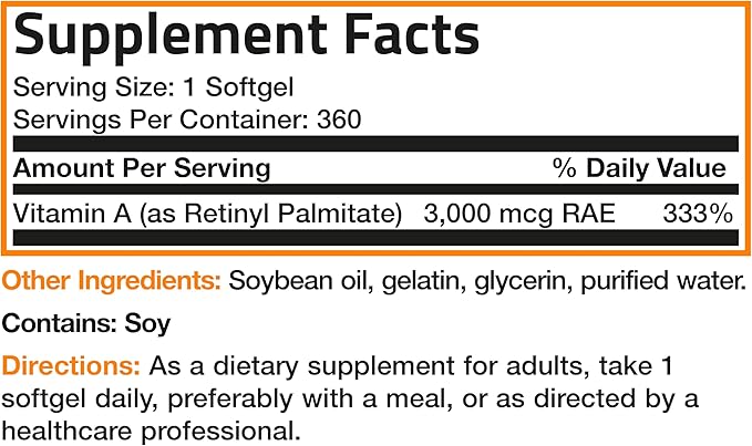 Bronson Vitamin A 10,000 IU Premium Non-GMO Formula Supports Healthy Vision & Immune System and Healthy Growth & Reproduction, 360 Softgels