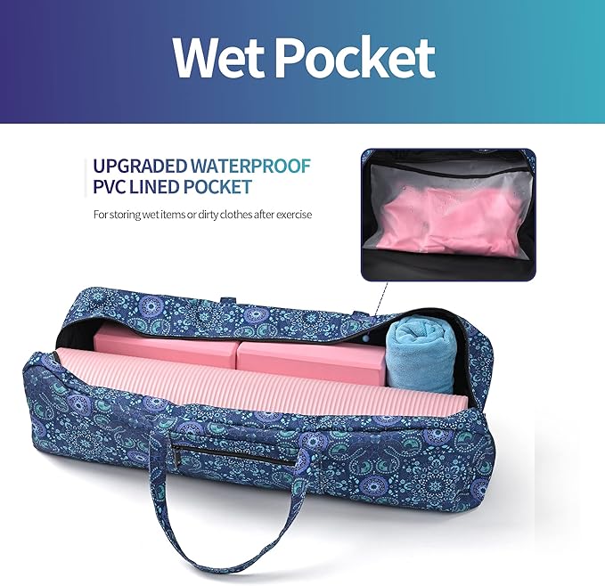 Boulder Bee | Yoga Mat Bag | Large Yoga Mat Carrier with Wet Pocket | Yoga Gifts | Gym Tote Bag for Women