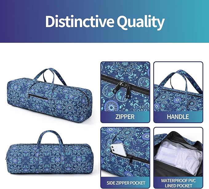 - Distinctive quality: The yoga mat bag is designed with vintage bohemian patterns. Features high-quality cotton canvas and reinforced sewing threads.