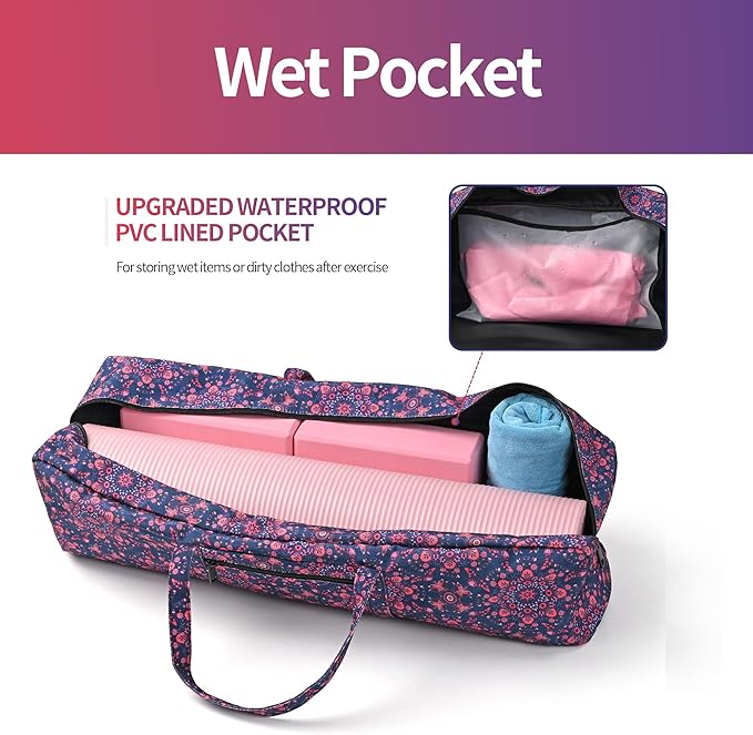 Boulder Bee | Yoga Mat Bag | Large Yoga Mat Carrier with Wet Pocket | Yoga Gifts | Gym Tote Bag for Women