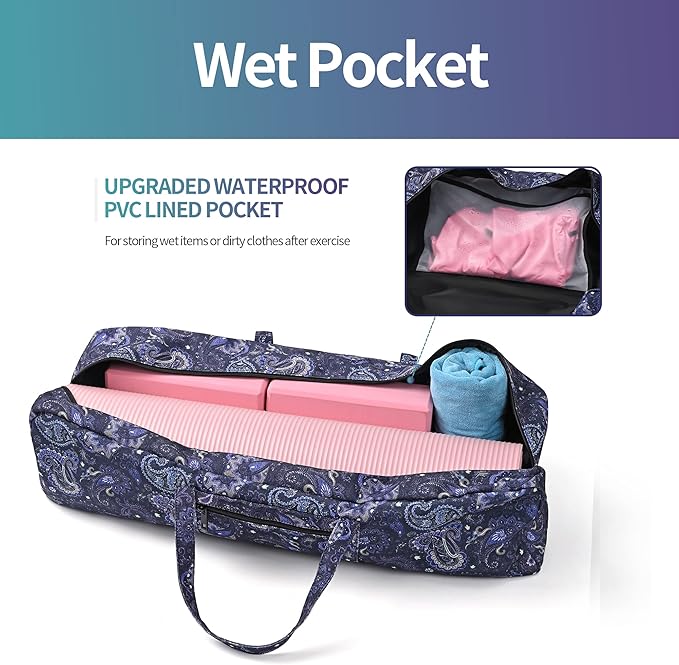 Boulder Bee | Yoga Mat Bag | Large Yoga Mat Carrier with Wet Pocket | Yoga Gifts | Gym Tote Bag for Women