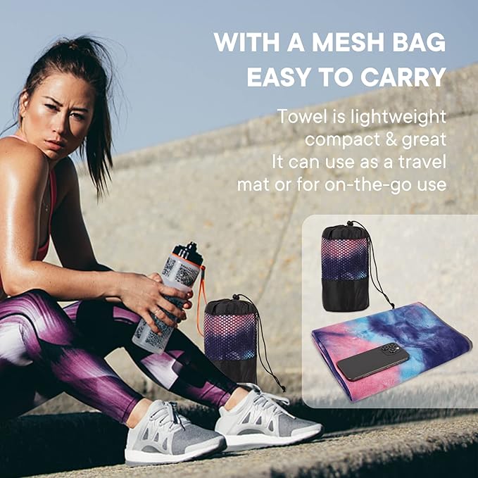 - EASY CARE AND PORTABLE: Simply throw this yoga towel into the washing machine with like colors and tumble dry low to keep it clean and fresh for your next yoga practice. The size of this yoga mat towel is 72 x 24 inches when unfolded, and 9 x 3.5 inches when folded. This makes it easy to store in the compact drawstring bag included in the package, making it convenient to bring it with you anywhere.