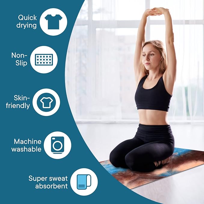 - PREMIUM MATERIAL: Made of high-quality, breathable, and quick-drying material, this yoga mat towel is perfect for hot yoga and sweaty sessions. The non-slip surface ensures a firm grip for your hands and feet, preventing injuries.