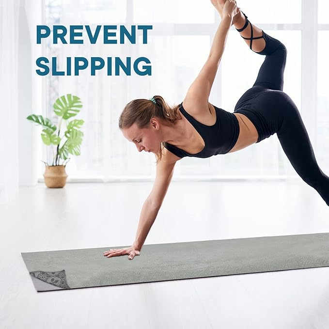 - PREMIUM MATERIAL: Made of high-quality, breathable, and quick-drying material, this yoga mat towel is perfect for hot yoga and sweaty sessions. The non-slip surface ensures a firm grip for your hands and feet, preventing injuries.