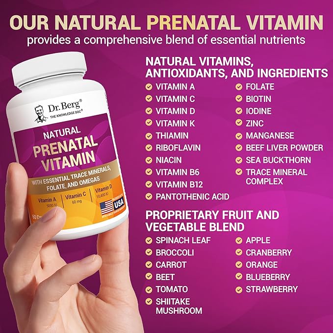 - ๐๐ผ๐บ๐ฝ๐น๐ฒ๐๐ฒ ๐ก๐๐๐ฟ๐ถ๐ฒ๐ป๐ ๐๐น๐ฒ๐ป๐ฑ - Dr. Berg Prenatal Vitamins for Women contains a premium quality blend of essential vitamins (A, C, D, K), trace minerals, folate, iodine, omegas, and 11 potent superfoods. The powerful ingredients in our prenatal vitamin offer nutritional support as part of a healthy pregnancy regimen.