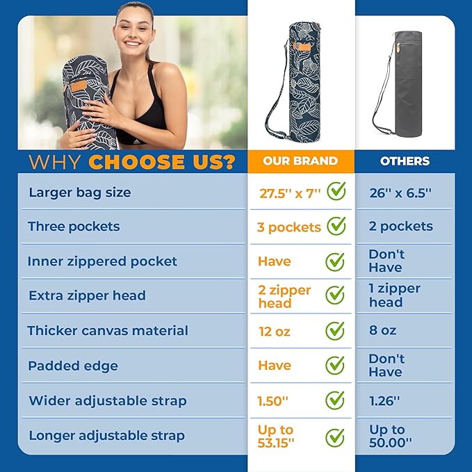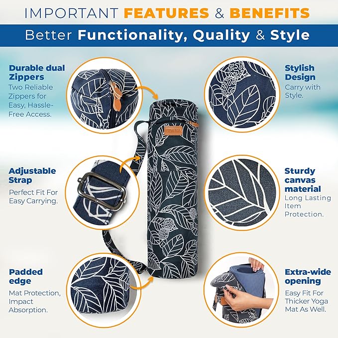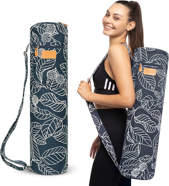 - 💪DURABLE and CONVENIENT: Crafted with heavy-duty canvas material, the Udana yoga mat carrying bag ensures lasting protection for all your yoga equipment and gym accessories. The dual zipper head design provides super easy access to your yoga mat thick without snagging or breaking. The adjustable strap is designed for a perfect fit, making it effortless to carry your yoga stuff wherever you go.