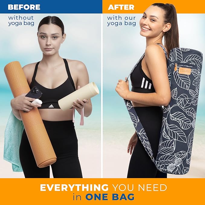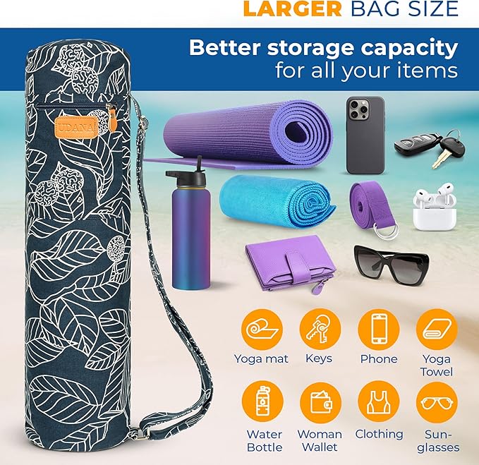 - 🧘ROOMY and VERSATILE: Large capacity design, the Udana yoga mat carrier bag effortlessly holds all your thick yoga mat and yoga gear. Whether it's your yoga mat, keys, phone, yoga towel, water bottle, yoga socks, money, clothes, resistance band, socks, mat cleaner, headphones, or hair ties, this bag has you covered. It's not just a yoga mat storage bag; it's your ultimate gym bag, shoulder bag, and travel bag companion, and used as yoga bags and carriers fits all your stuff.