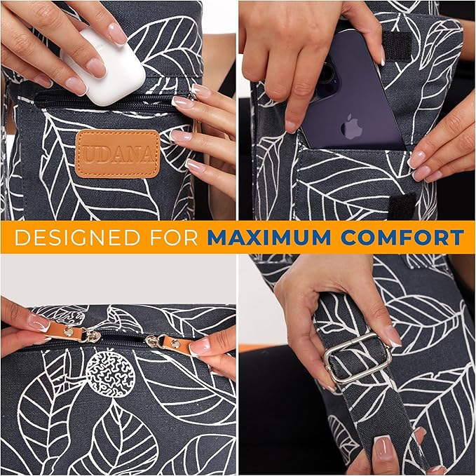 - 🧘THREE POCKETS: Stay organized on the go with Udana's yoga bags. Udana yoga mat bag carrier has multiple pockets: The Front Zippered Pocket [7.4 x 4.5 inch], Back Velcro Pocket [6.8 x 5.7 inch], and Inner Zippered Pocket [5.5 x 5.9 inch] offer secure storage for your yoga equipment, giving you both comfort and functionality to keep all your yoga accessories in one place.