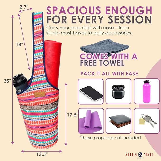 - 💝 PERFECT GIFT - Allen & Mate yoga mat bag comes in various colours and patterns to cater different individual styles and is a perfect gift for girlfriend or wife as birthday gift, Christmas gift or for mother on Mother’s Day. The appealing design and various colours make them best yoga gifts for yoga lovers.