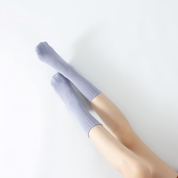 - 【Anti-Slide Grips】:The non-slip sticky grip patterns cover the entire heel and toe for maximum grip and traction. It improves stability and safety for all barefoot sports such as yoga, dance, Pilates and barre without worrying about slipping or sliding. This crew sock offers the perfect balance of support, cushioning and mobility.