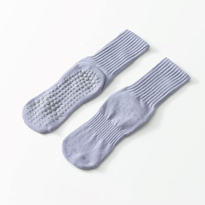 - 【Cozy Material】: Made of high quality cotton and spandex, the grip socks are soft and comfortable, moderate thickness, breathable and not stuffy, durable and stretchy, suitable for spring, summer, fall and winter. One size fits most female whose shoe sizes are 5-9.