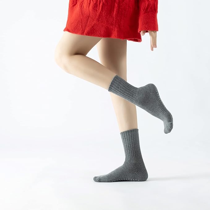 - 【Anti-Slide Grips】:The non-slip sticky grip patterns cover the entire heel and toe for maximum grip and traction. It improves stability and safety for all barefoot sports such as yoga, dance, Pilates and barre without worrying about slipping or sliding. This crew sock offers the perfect balance of support, cushioning and mobility.