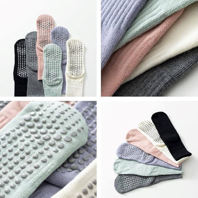 - 【Cozy Material】: Made of high quality cotton and spandex, the grip socks are soft and comfortable, moderate thickness, breathable and not stuffy, durable and stretchy, suitable for spring, summer, fall and winter. One size fits most female whose shoe sizes are 5-9.
