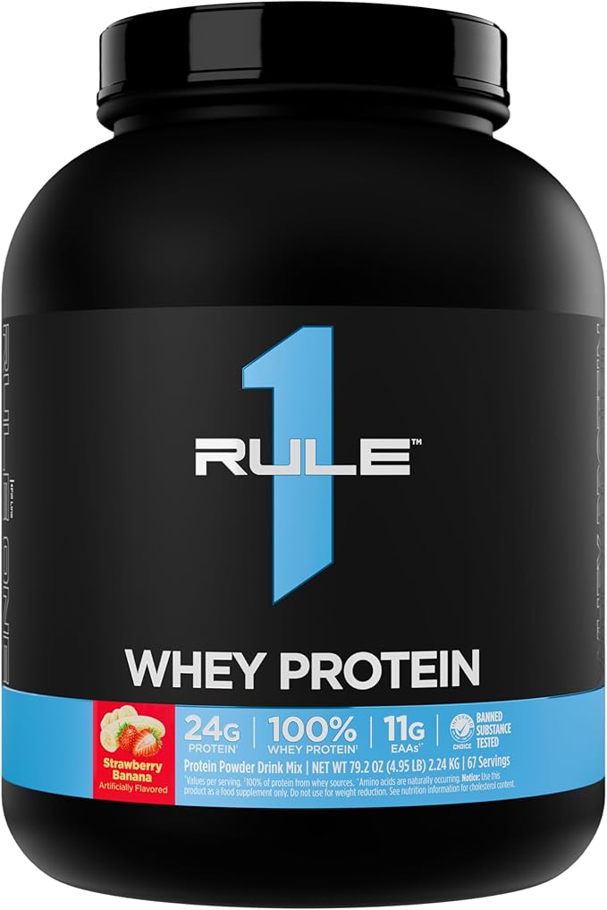 Rule 1 Whey Protein – 24g Fast-Acting Protein from All-Whey Sources with Naturally Occurring EAAs & BCAAs for Workout Recovery or Anytime Use (5 Pounds*, Strawberry Banana)