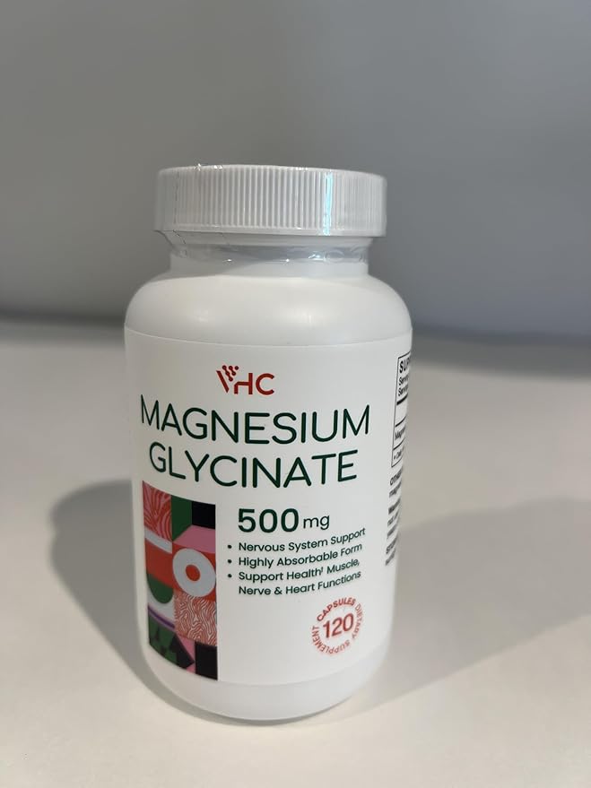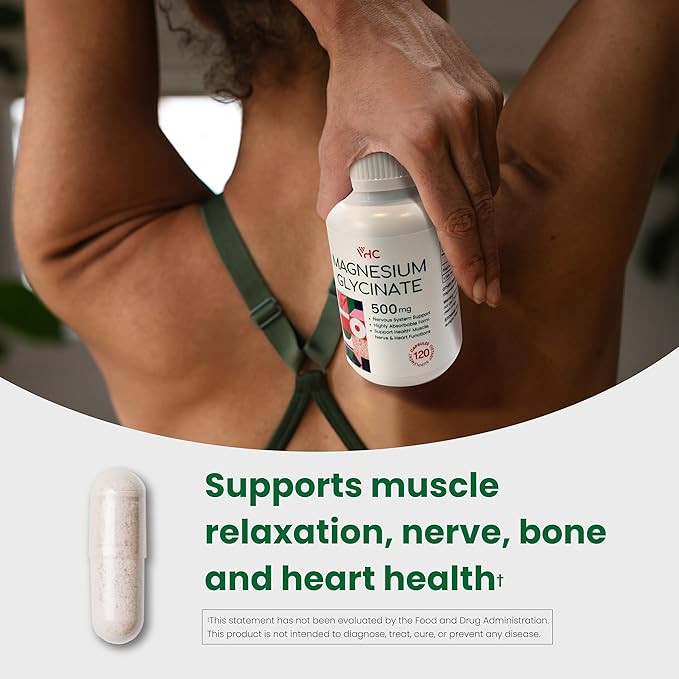 VHC Magnesium Glycinate 500mg Supplement Capsules, High Absorption- Gentle Form,Highly Purified Magnesium Mineral Supplements for Women & Men, 120 Caps, Made in USA