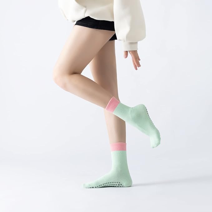 - 【Occasions】: The fancy color blocking cushioned grip socks are ideal for wearing on smooth and slippery surfaces like hardwood floors or tile, offering great comfort without sacrificing performance. In addition to being great for improving your yoga performance, our grip socks are also suitable for Pilates, ballet, ballet, fitness, dance and all other barefoot activities.
