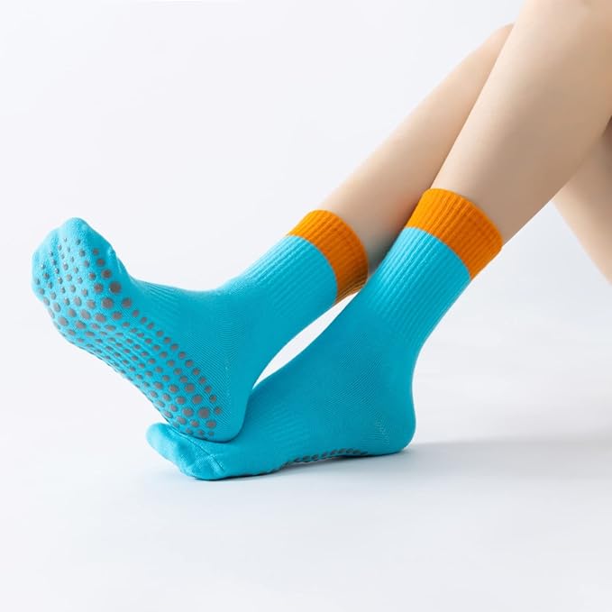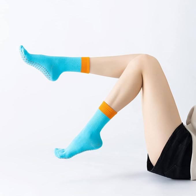 - 【Occasions】: The fancy color blocking cushioned grip socks are ideal for wearing on smooth and slippery surfaces like hardwood floors or tile, offering great comfort without sacrificing performance. In addition to being great for improving your yoga performance, our grip socks are also suitable for Pilates, ballet, ballet, fitness, dance and all other barefoot activities.