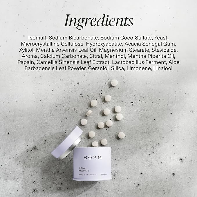 Boka Travel Size Mouthwash Tablets - Hydroxyapatite, Fluoride Free & Alcohol Free - Chewable Tablets to Freshen Breath, Kill Odor Quickly & Helps Remineralize Teeth - (Pack of 2, 90 Pcs, Mint)