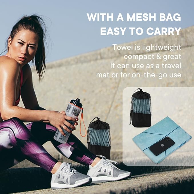 - HYGIENIC AND HEALTHY: By using this yoga towel on top of the studio mat, you can put a hygienic layer between you and the mat. This will increase your confidence and remove your worries about whose sweat and germs you'll be practicing on. It's lightweight, easy to carry, and fits nicely in your bag.