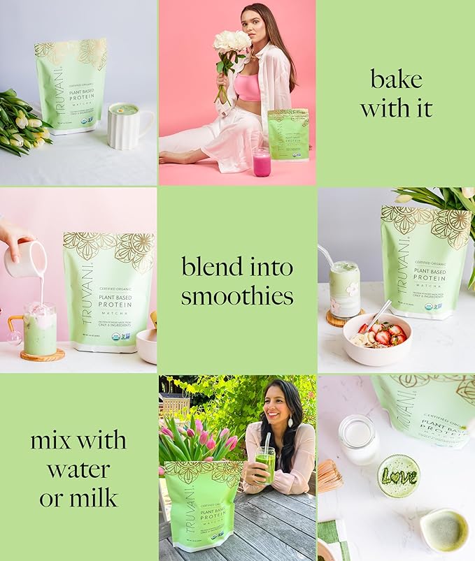Truvani Vegan Pea Protein Powder | Matcha | 20g Organic Plant Based Protein | 10 Servings | Keto | Gluten & Dairy Free | Low Carb | No Added Sugar