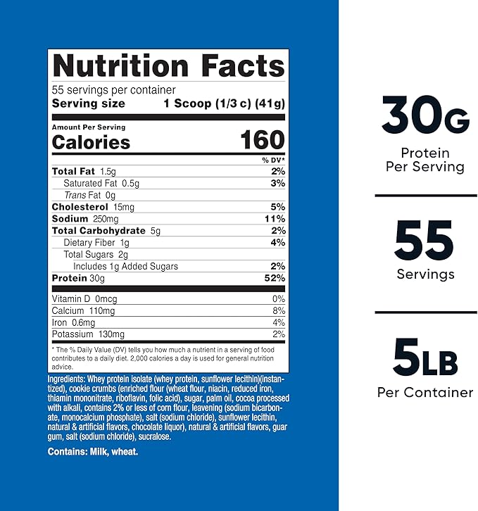 - 5 LBS of Delicious Cookies & Cream Flavored Whey Protein Isolate