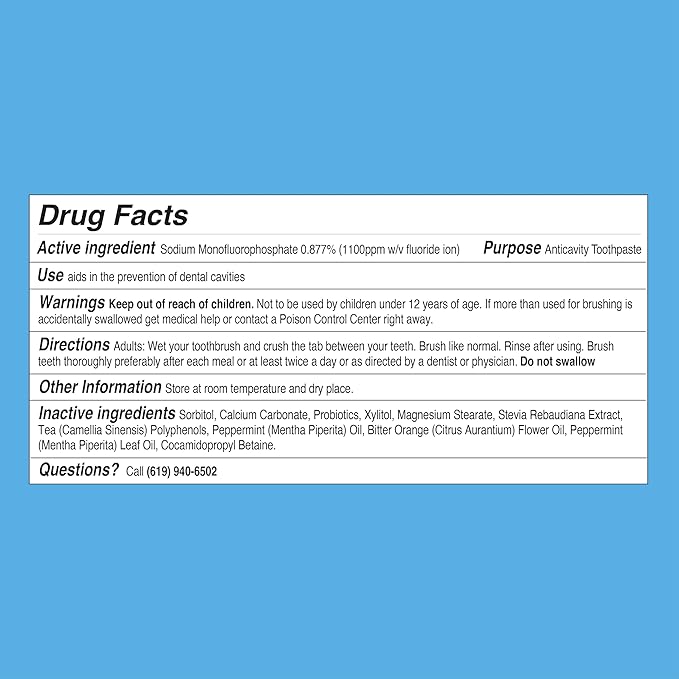 - MADE WITH NATURAL INGREDIENTS: We believe in better-for-you ingredients, which is why our vegan toothpaste tablets are formulated with naturally derived ingredients like sorbitol and mint oil for all natural toothpaste dental tabs.